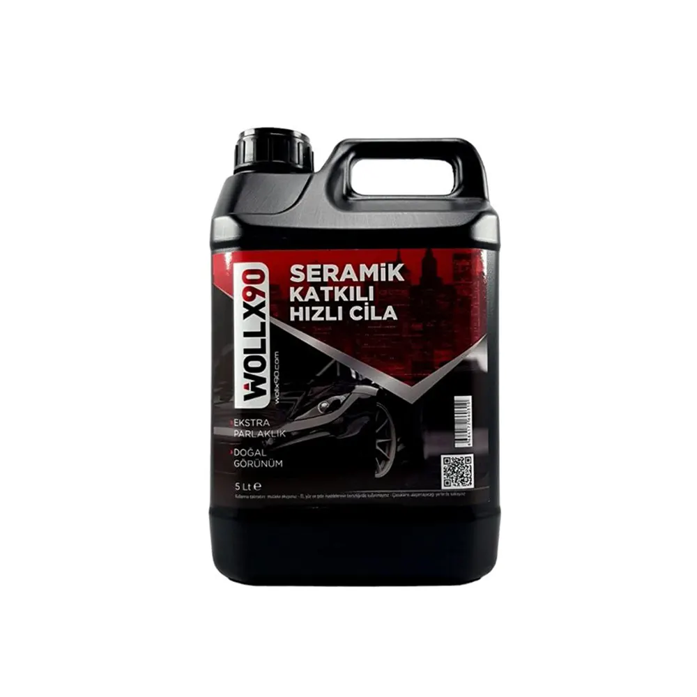 Ürün Açıklaması : Wollx90 Seramik katkılı hızlı cila aracınızın yüzeyine parlaklık kazandırmakla birlikte aracınızın çok daha şık görünmesini sağlar. Wollx90 Seramik katkılı hızlı cila araç yüzeyinde oluşturduğu ince katman sayesinde su itici özelliği bulunmaktadır. Wollx90 Seramik katkılı hızlı cila yüzeyi zararlı güneş ışınlardan korumaktadır. Wollx90 Seramik katkılı hızlı cila boya üzerine statik yapışmayı azaltarak toz yapıştırmaz. Wollx90 Seramik katkılı hızlı cila yüzeyde koruyucu ince bir film tabakası oluşturmaktadır.